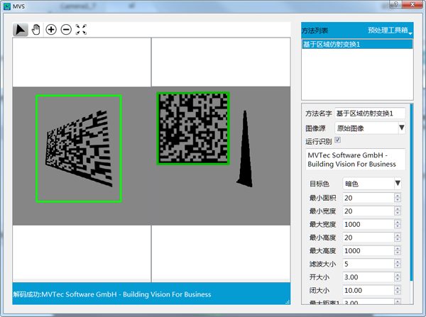 2、針對相機嚴重不能與產品平行從而產生二維碼嚴重畸變的的情況通過基于區域的放射變換而達到檢測 ...