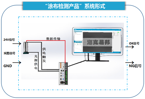 一、產品介紹: “涂布機器視覺檢測系統”由海克易邦光電科技有限公司自主研發,用于涂布行業缺陷檢測。系統通過識別圖像特征,分析計算涂布圖案的特征信息變化,輸出穩定清晰的圖案信息。同時可對圖像進行亮度監控,涂布質量檢測的功能,檢測過程異常時給出異常信號,同時對應輸出OK或NG信號,并在處理器存儲不合格零件圖片。本設備主要應用涂布品的生產過程中。