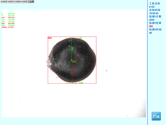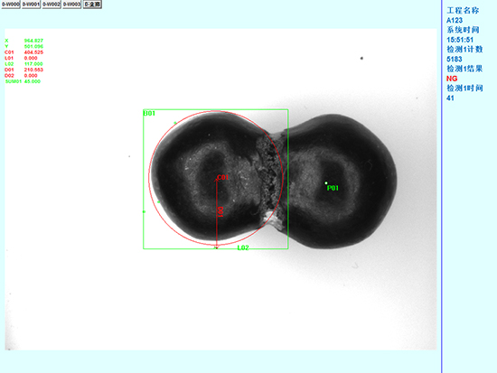 本公司基于機器視覺圖像處理技術研發在藥粒檢測過程中,需進行藥粒上白點、藥粒圓不圓、藥粒的粘連、藥粒的色澤正確等功能,檢測完成后輸出OK、NG信號,在排廢位進行剔除動作。本系統將通過快速獲取在線對藥粒的圖像,通過圖像識別、分析或計算獲取藥粒特征信息,來判斷是否符合要求,并輸出控制信號。系統主要模塊有:觸發定位模塊,圖像處理模塊、控制模塊。根據用戶需求,樣品移動到檢測位時觸發相機、視覺系統輸出檢測信號,從而完成檢測功能。