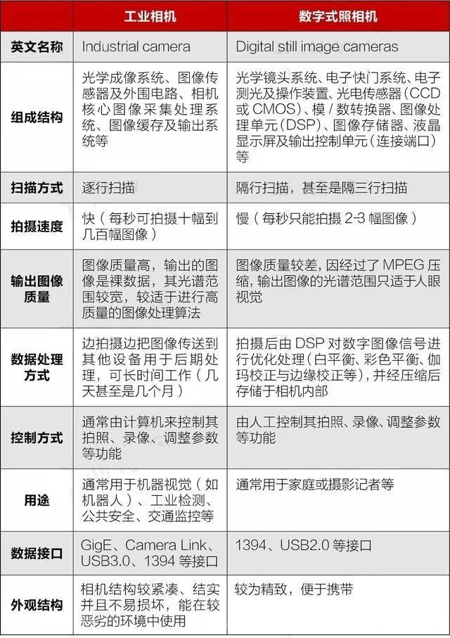 ⑤按照輸出信號方式:可以分為模擬相機、數字相機;